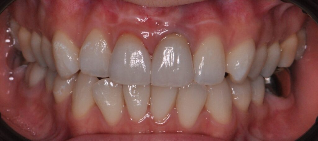 歯茎が落ち着いたところで、再度セラミックを被せ直しました。